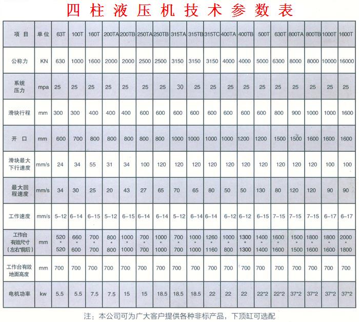 100噸四柱油壓機(jī)(四柱液壓機(jī))參數(shù)