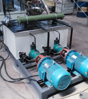 塞,使清潔換油方便。油泵吸油口裝有吸油濾清器,確保油的清潔度,保證油泵和閥的使用壽命,泵站帶有